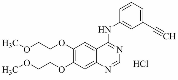 化學名稱:N-(3-乙炔苯基)-6,7-雙(2-甲氧乙氧基)-4-喹唑啉胺鹽酸鹽